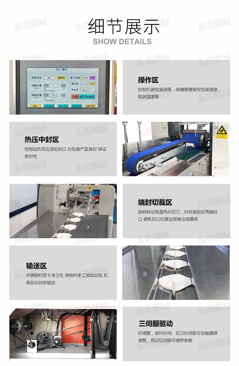 1.口罩包裝機速度快省人工山東濟南供貨枕式包裝機是目前國內(nèi)新型的自動連續(xù)收縮 包裝設備,采用石英遠紅外管加熱,節(jié)電高效(節(jié)電15以上);