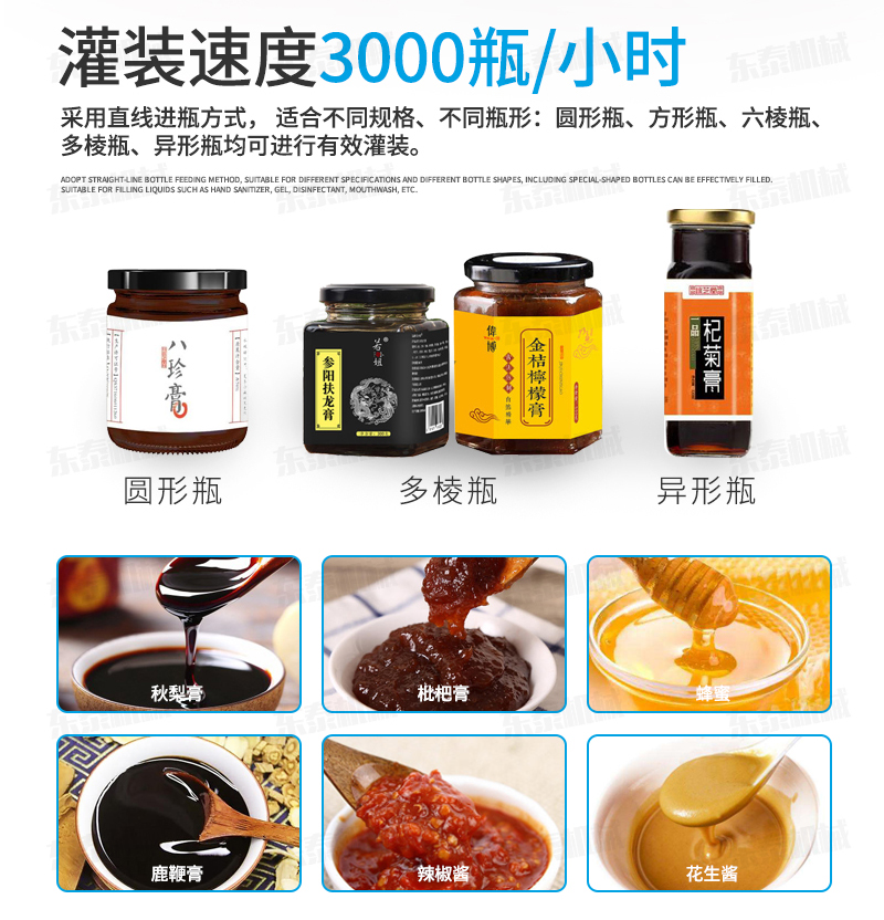 現(xiàn)如今,人們經(jīng)常在再飯后以及平時(shí)的生活中喜歡喝點(diǎn)蜂蜜作為養(yǎng)生,好的蜂蜜非常被我們鐘愛,它的口感、質(zhì)感都堪稱上等,有些人覺得土蜂蜜營養(yǎng)價(jià)值更高,將其吹捧得神乎其神,還有些人為了讓蜂蜜可以保存較長時(shí)間,把它放入冰箱中,而蜂蜜灌裝機(jī)設(shè)備廠家所設(shè)計(jì)的自動(dòng)化蜂蜜灌裝機(jī)就是專業(yè)根據(jù)蜂蜜特性而設(shè)計(jì)研發(fā)的,在各個(gè)領(lǐng)域的應(yīng)用中都有涉及,現(xiàn)在人們對包裝需求和要求的提高,注定了自動(dòng)化蜂蜜灌裝機(jī)將將會(huì)有著很好的發(fā)展前景,提升了整體行業(yè)的水平,尤其一些創(chuàng)新、技術(shù)開發(fā)等積極性行動(dòng),來完成企業(yè)的更好發(fā)展前景。